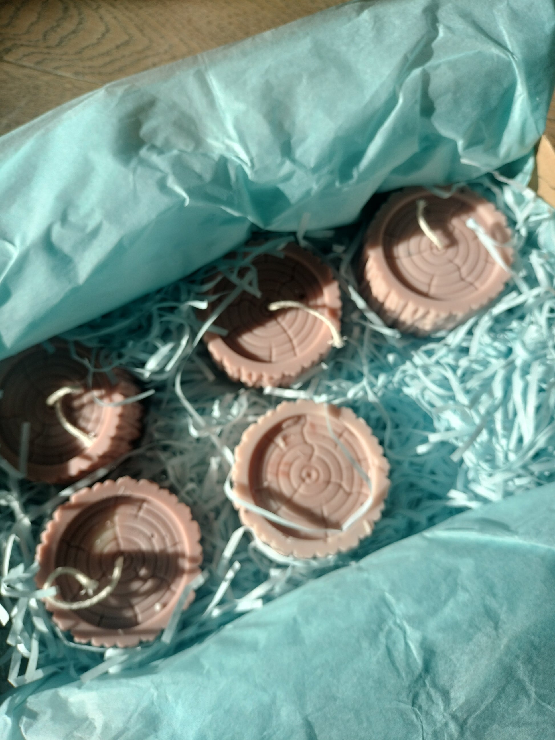• Chaque bougie pèse environ 120 grammes et à une taille de 7x6.3 hauteur 3.8 cm.